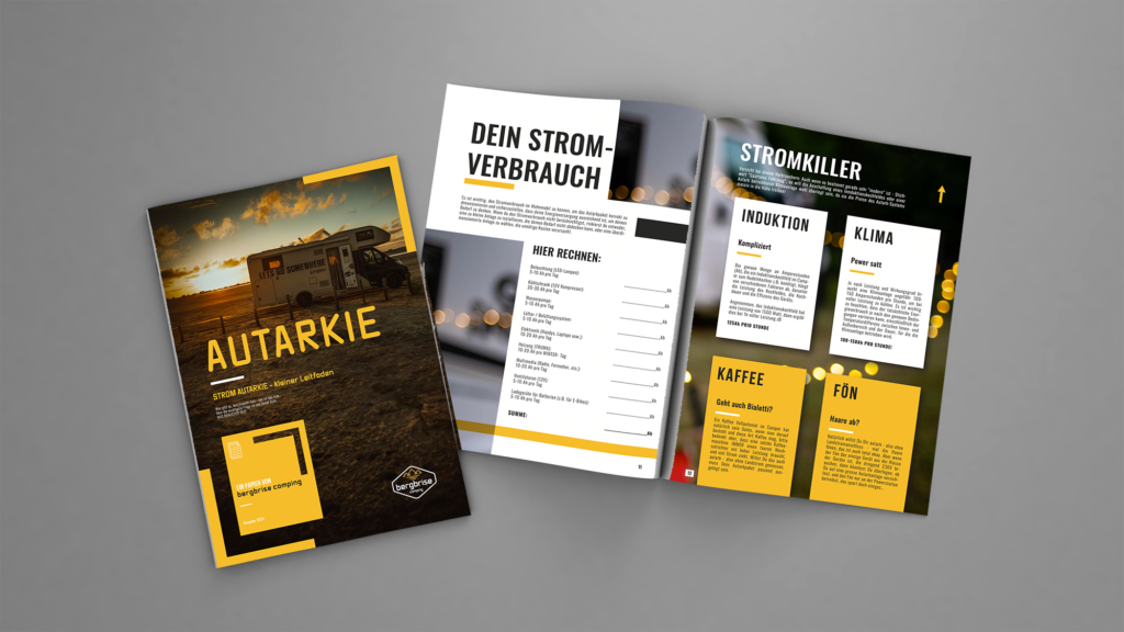 Der Bergbrise-Camping Autarkie-Guide sammelt auf über 40 Seiten viele Informationen rund um das Thema Strom-Autarkie im Wohnmobil. Er enthält außerdem viele Tipps, tricks und Hinweise, wie Du Dein Fahrzeug smart autark machen kannst, ohne gleich eine 5-stellige Summe auf den Tisch legen zu müssen, der Guide spart Dir unterm Strich also unter Umständen richtig viel Geld!