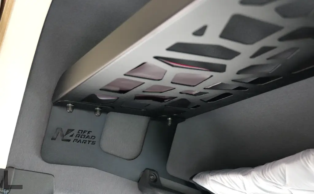 Als erstes möchte ich über das Fahrerhaus sprechen. Mein neuer HYMER Grand Canyon S hat im Gegensatz zu meinem alten Ducato kein Staufach über dem Fahrerhaus. Also habe ich mir ein Metallregal von N4 Offroad Parts besorgt und oben eingebaut. Das war nicht nur eine kostengünstige Alternative zu den teuren Optionen auf dem Markt, sondern bietet auch jede Menge zusätzlichen Stauraum für Jacken und andere Dinge, die ich schnell greifen möchte.